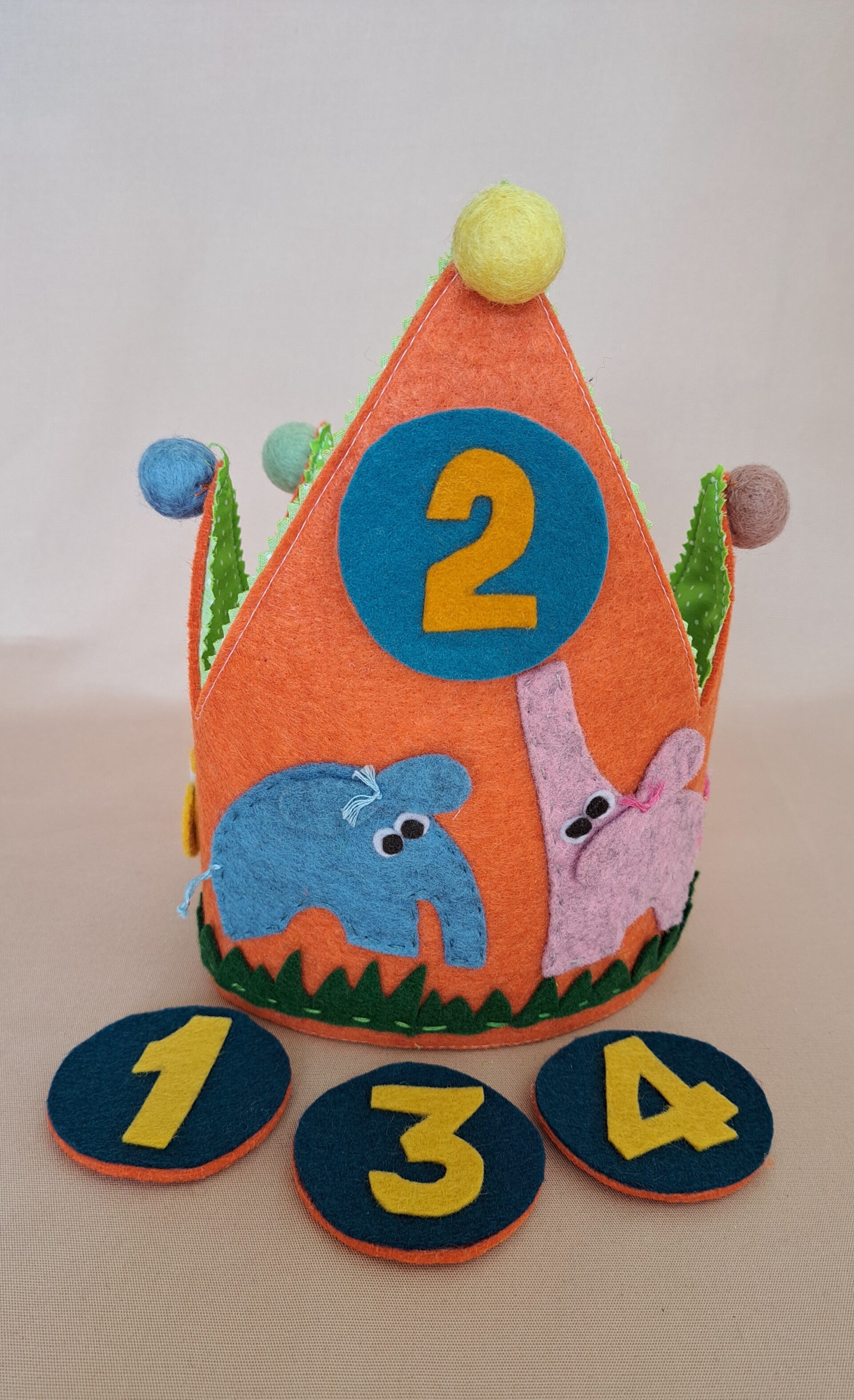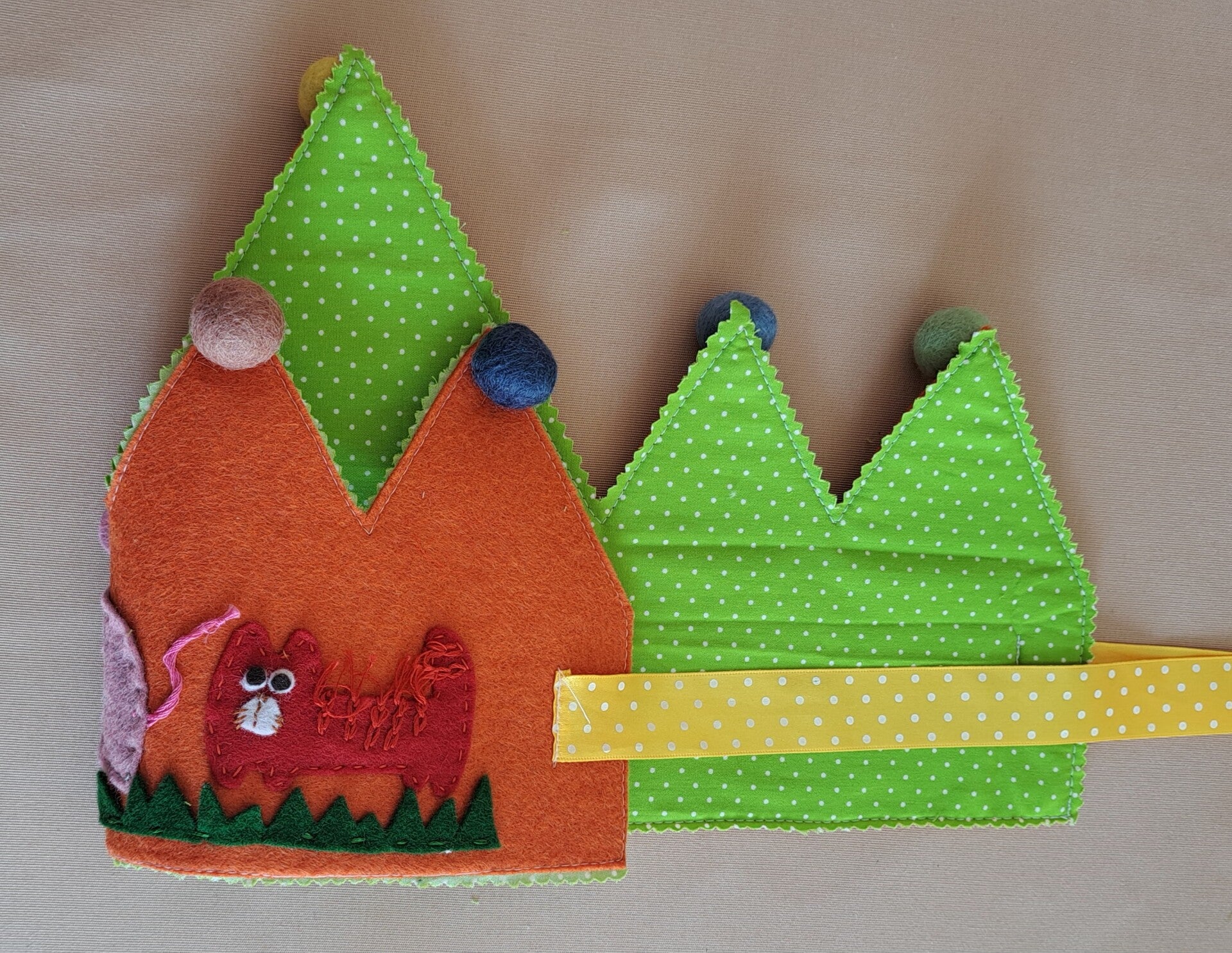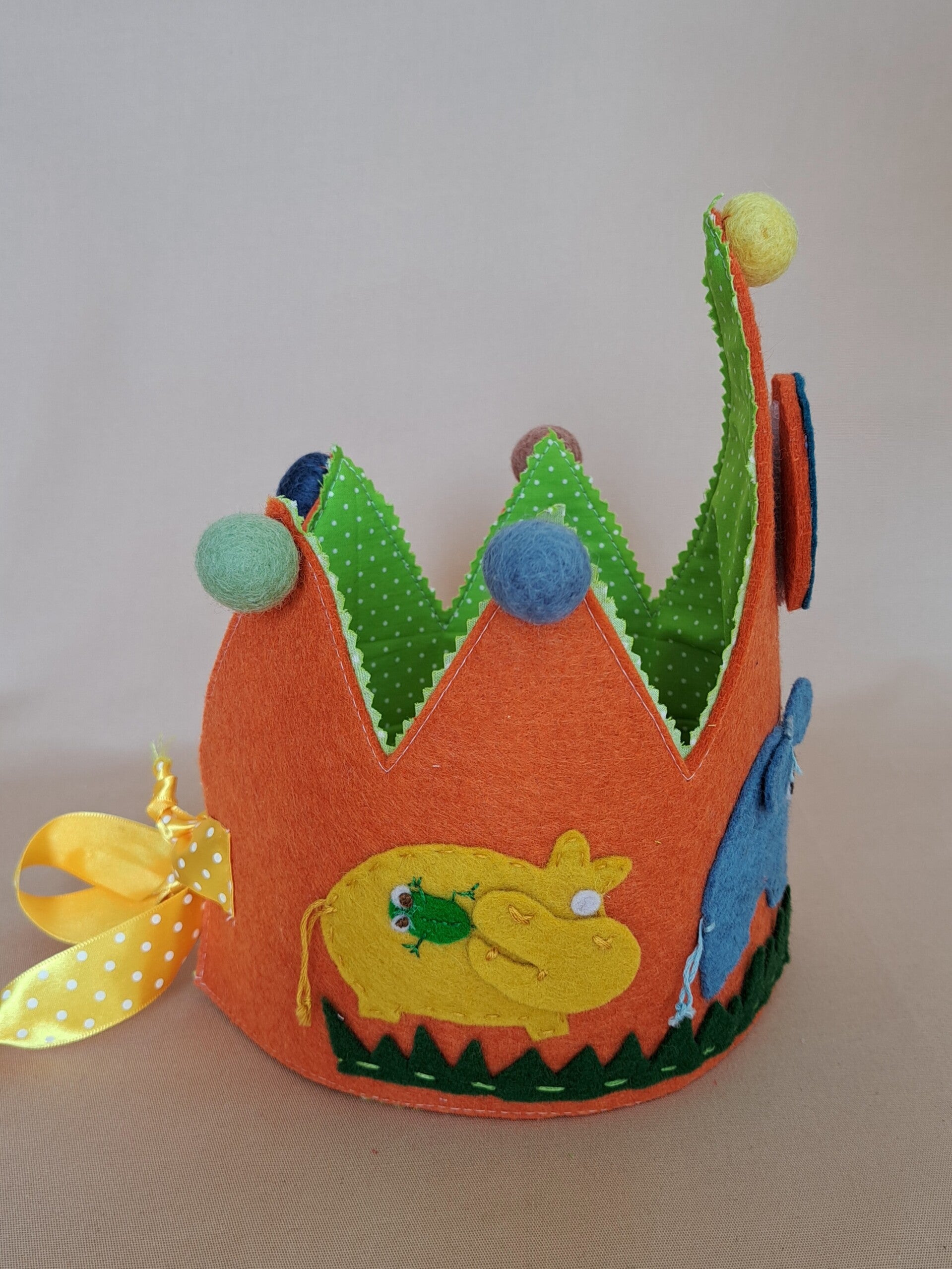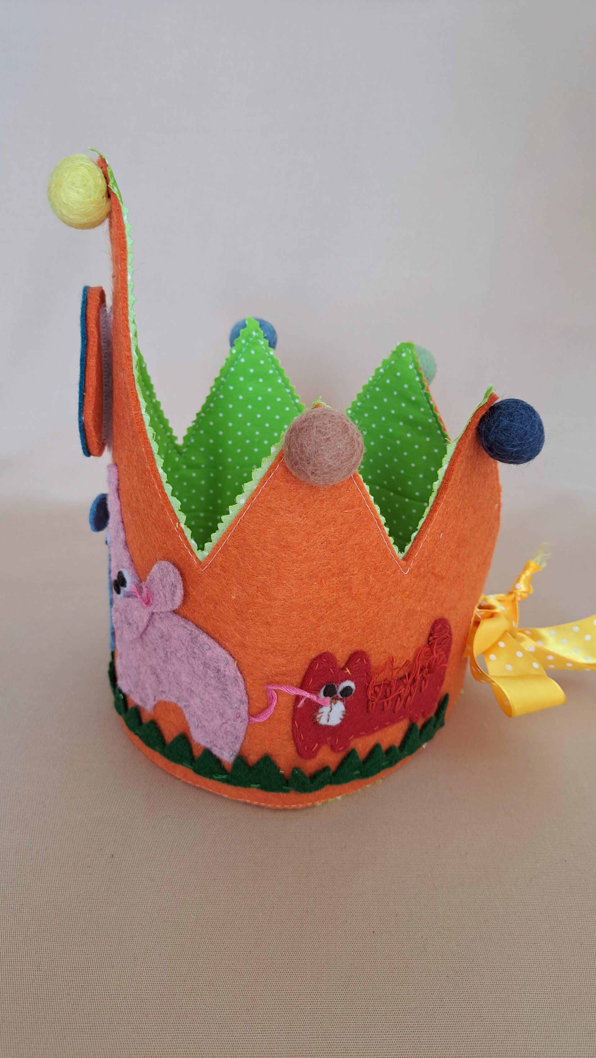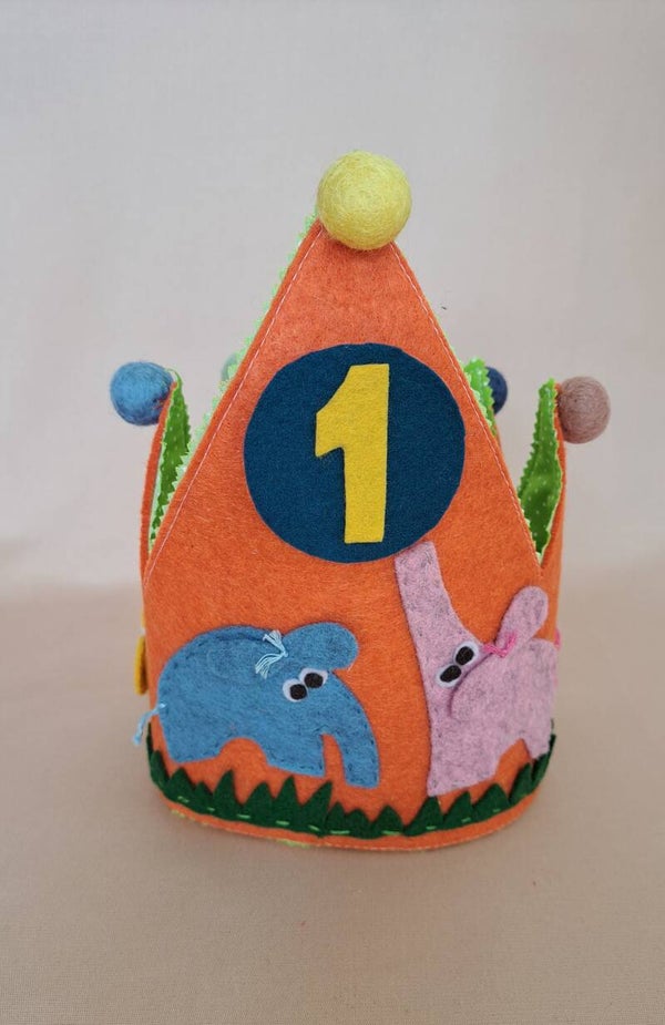 De kroon is gemaakt van stevig vilt met een katoenen voering aan de achterkant.