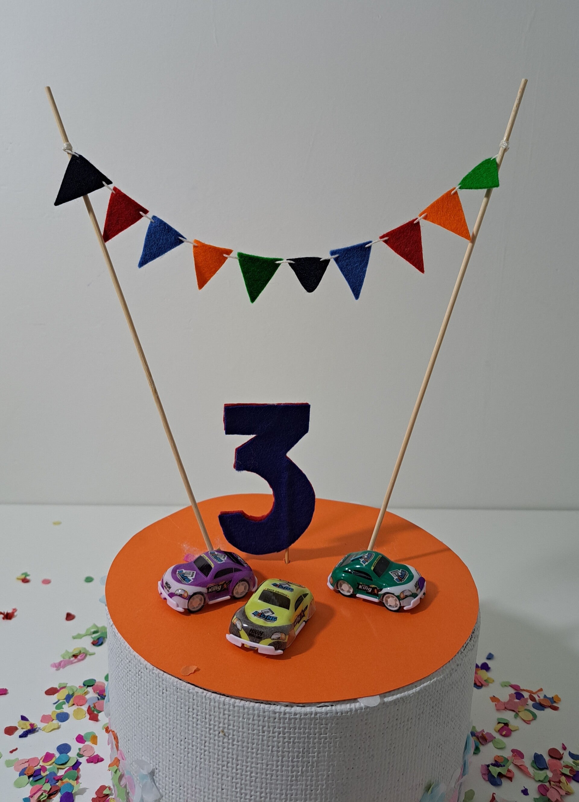 Tien vrolijke vlaggetjes om de verjaardag taart te versieren met groot cijfer van de leeftijd jarige.